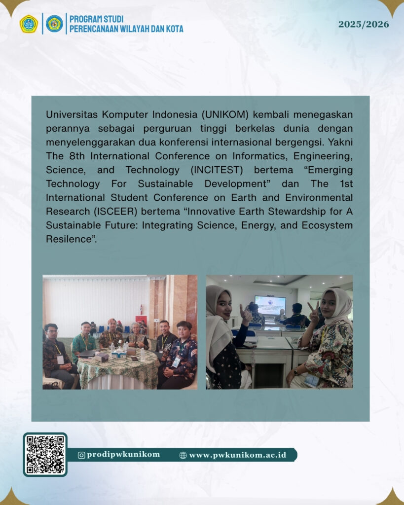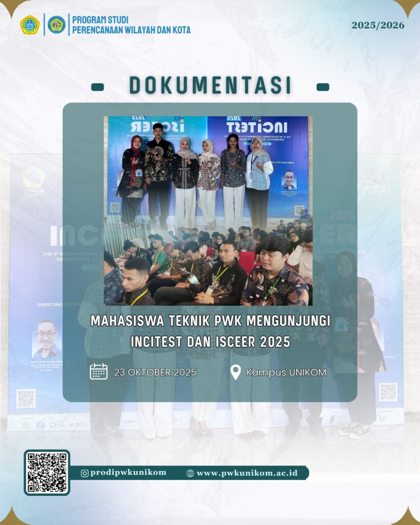 Sejumlah Mahasiswa Prodi Teknik PWK Mengikuti Kegiatan Incitees dan Isceer yg dilaksanakan di UNIKOM, Kegiatan ini merupakan pengalaman yang sangat berharga bagi mahasiswa yang mengikutinya, disambut dengan sangat gembira